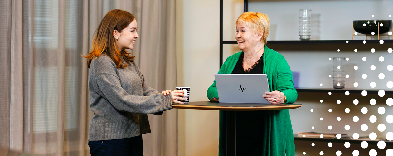 Sekä korkeakouluharjoittelija että 45 vuoden uran tehnyt asiantuntija pitävät innostavana sitä, että voivat Hanselissa oppia koko ajan uutta. Toinen heistä katsoo julkisia hankintoja analytiikan ja toinen kilpailuttamisen näkökulmasta.